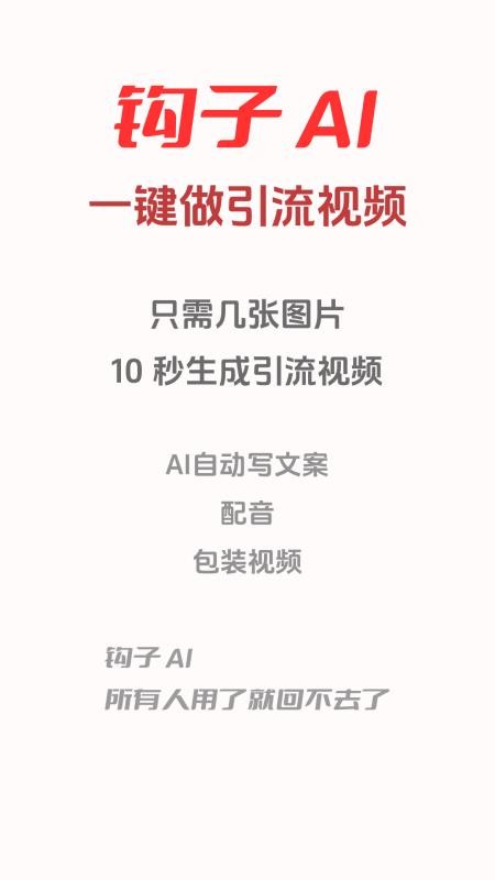 钩子AI最新版是一款革命性的视频创作工具,通过前沿的AI技术彻底改变了传统视频制作方式。这款软件运用智能图像处理算法,能够自动将用户上传的素材转化为专业级的营销视频,特别适合需要快速产出高质量内容的创作者和商家。无需任何视频剪辑经验,用户只需简单上传图片,AI就能在10秒内完成从文案创作、配音到配乐的全流程,生成适合各大平台传播的爆款短视频。软件提供完全免费的使用体验,支持多种风格模板选择,让创作变得前所未有的简单高效。所有生成的作品都会自动保存,方便用户随时查看历史记录并进行数据分析,持续优化内容质量,帮助提升社交媒体的互动率和转化效果。