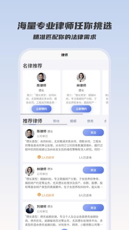 平台与全国多家知名律所建立合作关系,汇聚了各领域的资深律师。严格的入驻审核机制确保每位律师都具备专业资质和丰富经验,为用户提供可靠的法律保障。