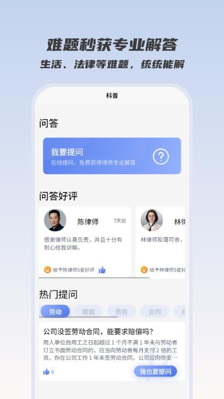 平台提供从法律咨询到案件代理的一站式服务,覆盖金融借贷、经济纠纷、劳动仲裁等多个领域。专业团队会根据用户具体情况,提供最优的法律解决方案。