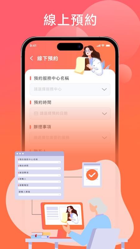 提供便捷的线下服务预约功能,用户可选择养老服务中心、预约时间和服务项目,系统会自动匹配最优服务资源。预约成功后会有短信提醒,并支持修改或取消预约,让服务安排更加灵活。