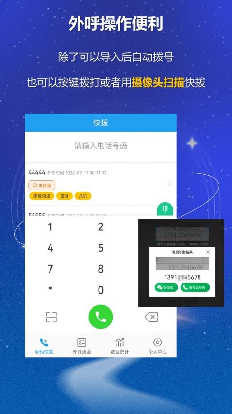 创新的智能拨号系统,支持单卡/双卡自动轮拨、预约回拨等多种模式。拨号过程完全自动化,大幅降低人工操作强度,日均拨打量提升5-10倍。