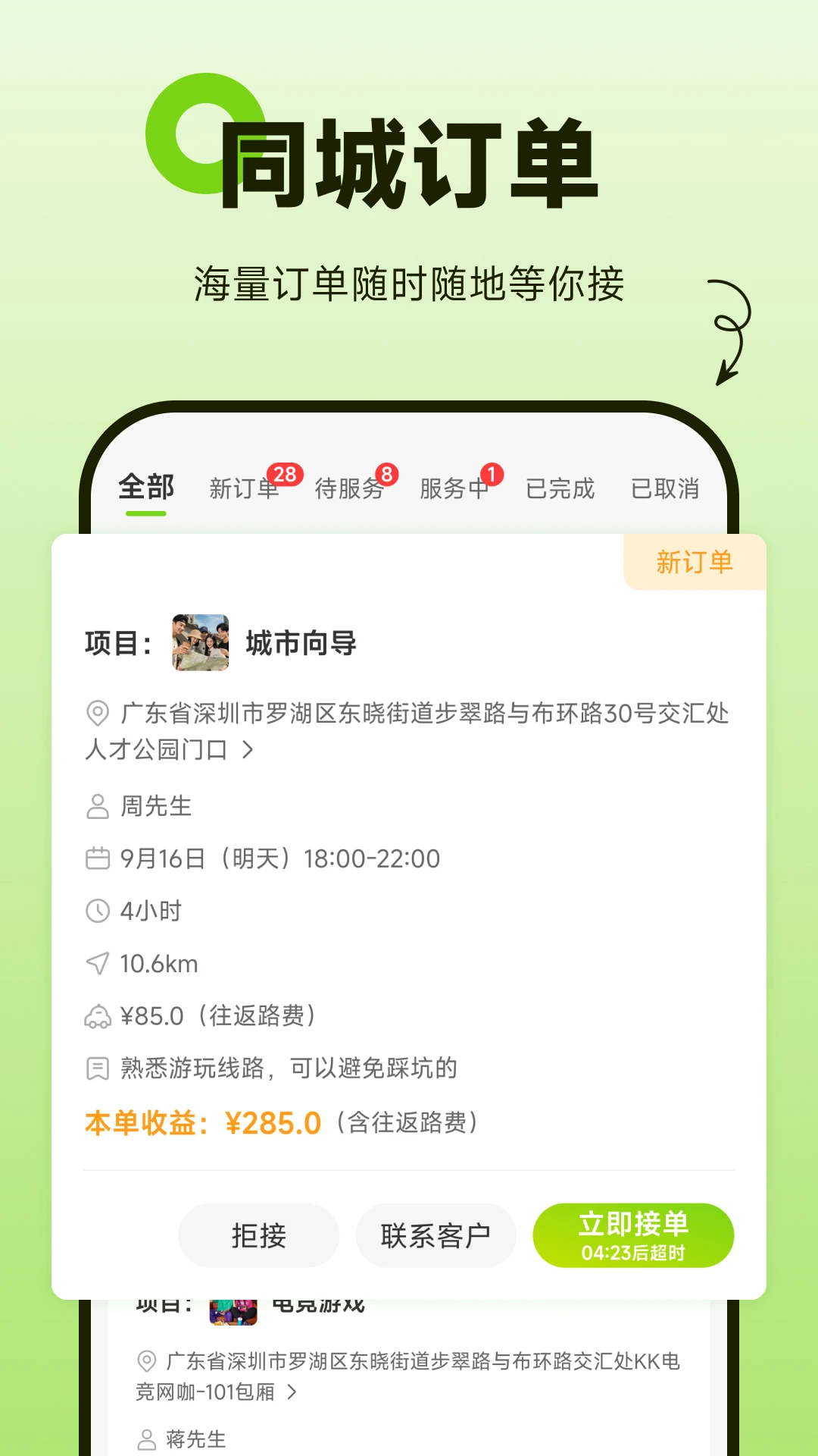 叫个伴-达人端提供全方位的接单管理功能,包括订单提醒、服务预约、路线规划、收入统计等实用工具。达人可以自由安排工作时间,灵活选择接单范围,实现工作与生活的完美平衡。平台还设有完善的评价体系和客服支持,保障达人的合法权益。