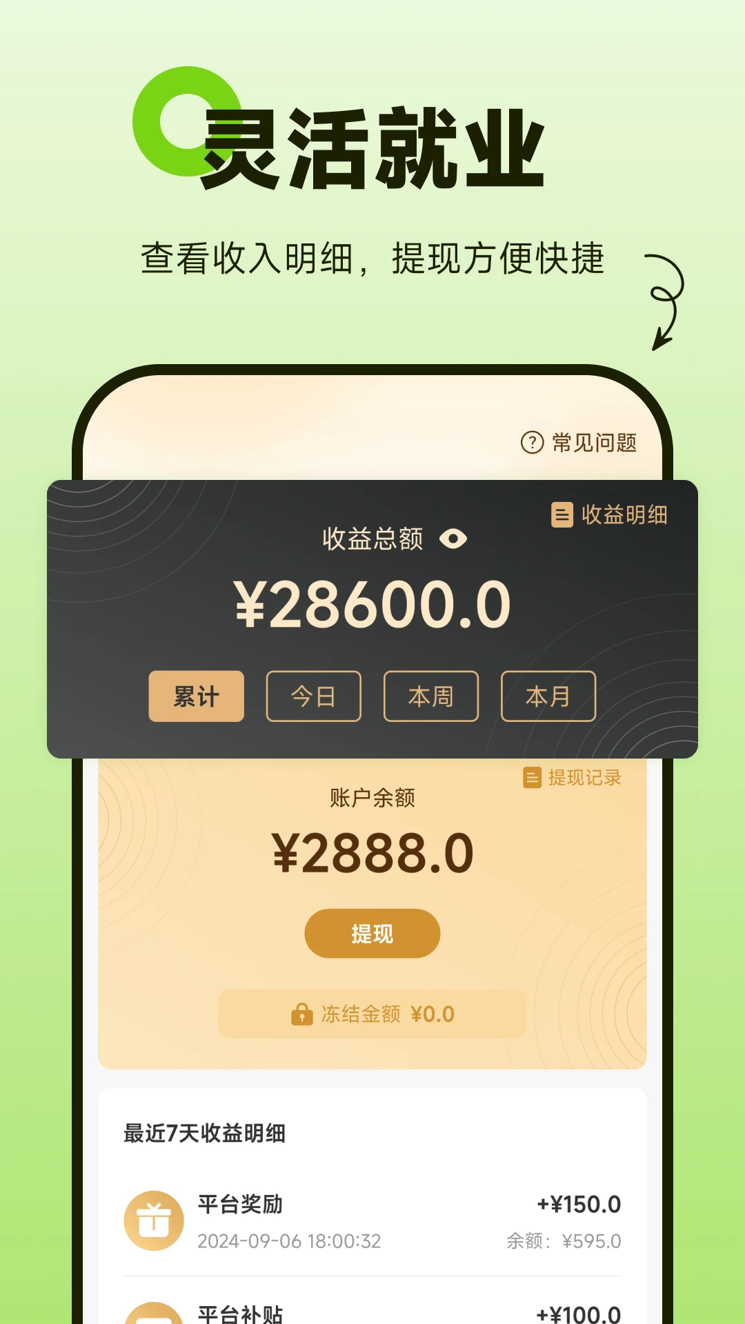 叫个伴-达人端是一款专为具备各类服务技能的达人精心设计的线上接单平台,致力于为自由职业者和技能从业者提供高效便捷的灵活就业解决方案。无论您是擅长家政服务、维修安装、美容美发、教育培训,还是拥有其他专业技能,这款软件都能帮助您轻松实现个人价值并创造稳定收入。