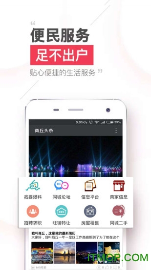 商丘头条是一款专为商丘市民打造的本地化资讯服务平台,致力于为用户提供最新、最全面的生活资讯和便民服务。通过这款应用,用户可以轻松获取商丘本地的新闻动态、生活服务信息以及各类实用功能。无论是突发新闻、同城活动,还是求职招聘、房屋租售,商丘头条都能满足您的需求。界面简洁易用,功能丰富多样,让您随时随地掌握商丘的最新动态。快来下载体验,开启您的本地生活新方式!