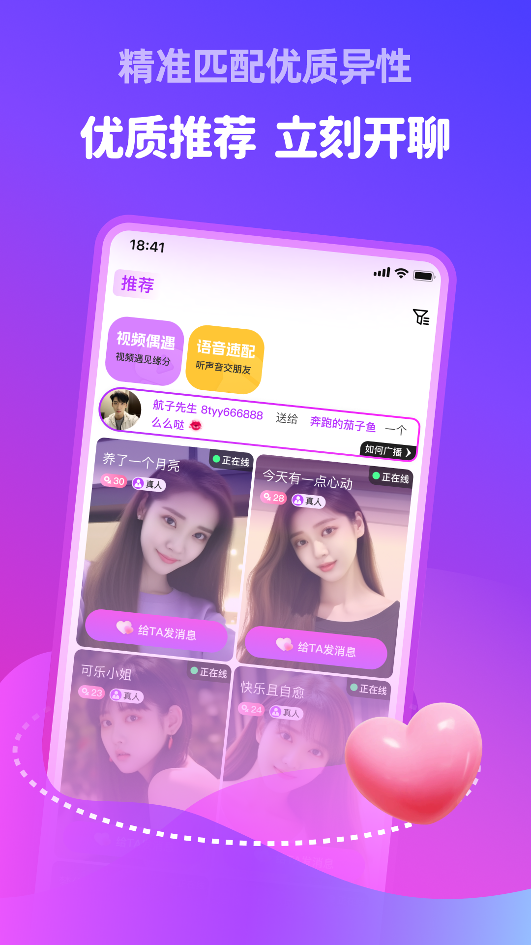 附近甜伴是一款专为单身人士打造的真人视频交友平台,致力于帮助用户邂逅浪漫缘分。通过智能算法精准匹配同城优质异性,让你足不出户就能结识心仪对象。平台支持高清视频、清晰语音和即时文字聊天,多种互动方式让彼此了解更深入。独特的礼物赠送和守护功能,为你的心动时刻增添甜蜜仪式感。在这里,每一次相遇都可能成为美好故事的开始,让孤单的心找到温暖的归宿。