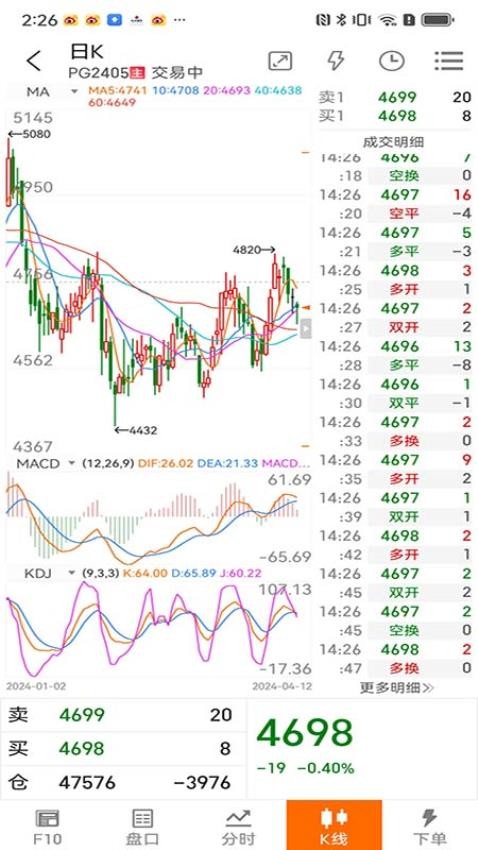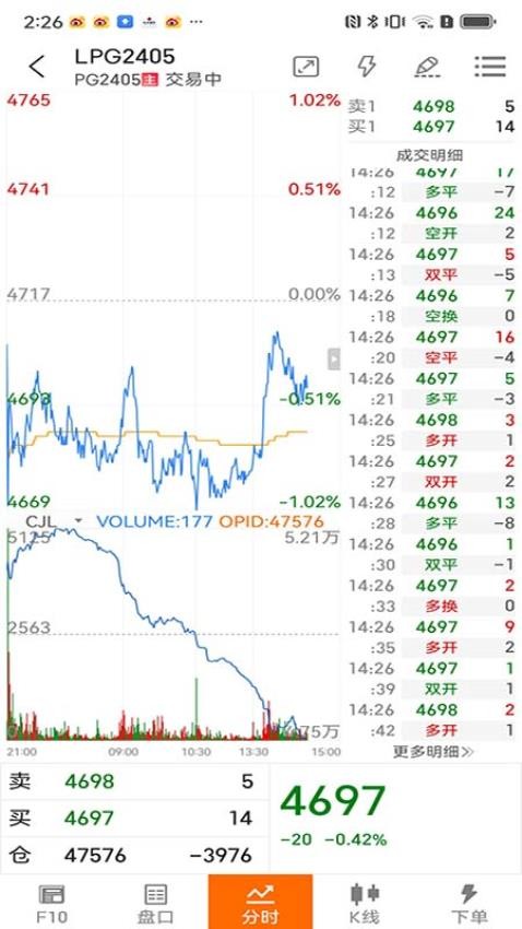 可以随时点进软件的"交易"版块进行各样期货、基金交易;交易界面简洁明了,支持多种订单类型。