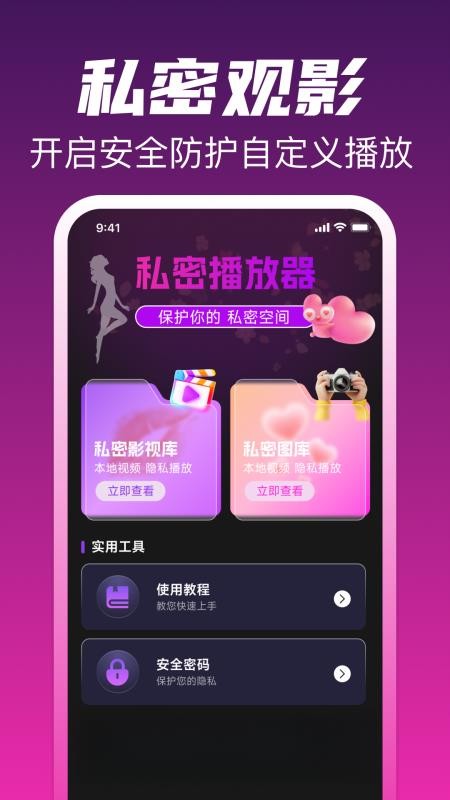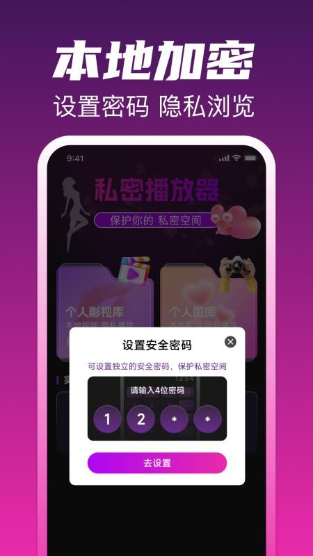 高清私人影音播放器APP是一款集隐私影音播放与加密保护功能于一体的专业应用软件。它采用先进的本地加密技术,为用户提供全方位的文件保护服务,无论是视频、相册、音频还是文档,都能轻松加密,确保个人隐私安全。这款软件不仅功能强大,还具备出色的视频管理能力,帮助用户快速分类和查找本地视频文件,让影音管理变得简单高效。
