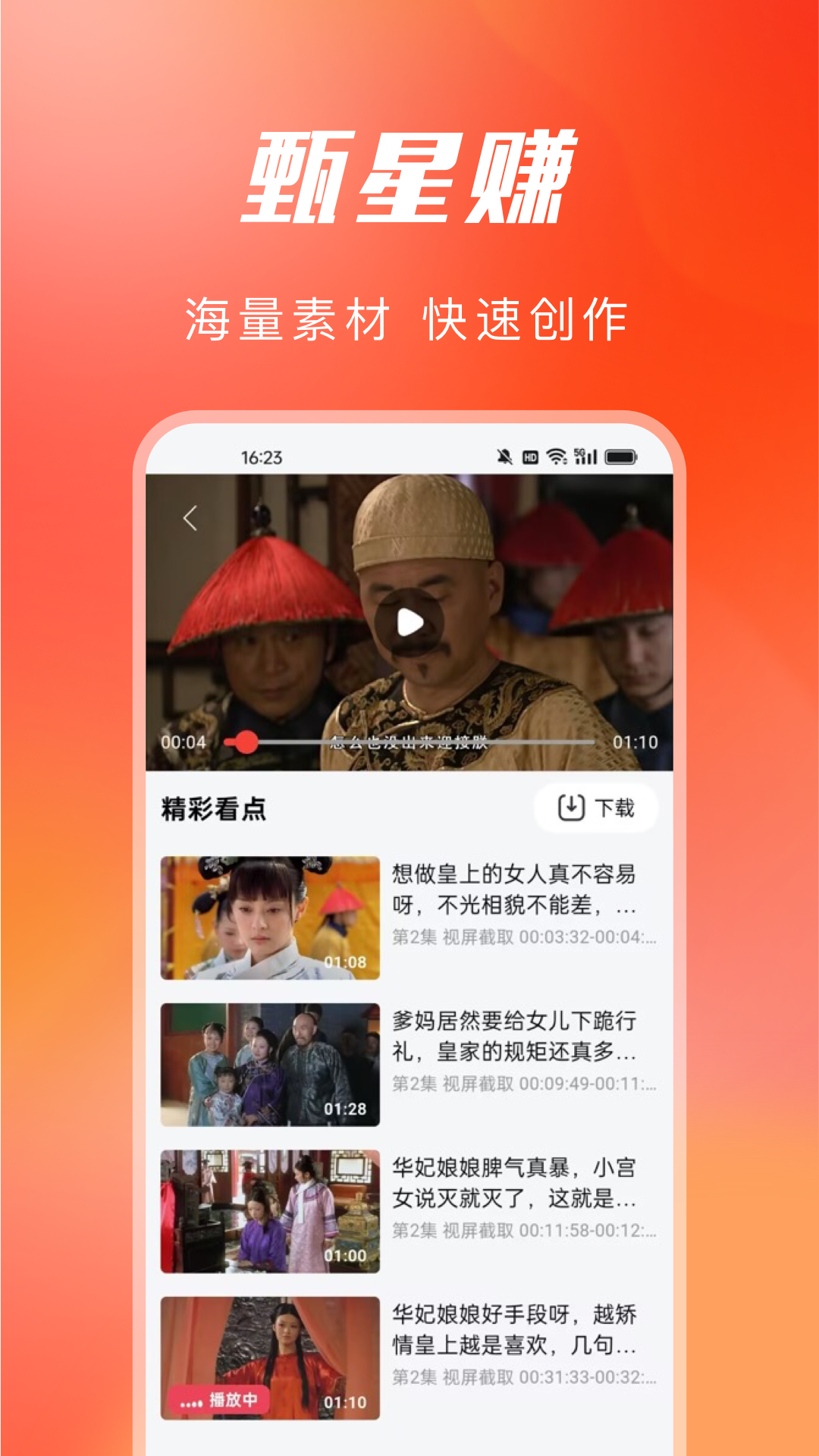 作为一款全方位的内容创作助手,甄星赚提供了多项强大功能:一键生成解说视频功能让创作者可以快速完成高质量视频制作;海量热门变现任务库持续更新,确保创作者总能找到适合自己风格的商业合作机会;智能生成解说文案工具运用先进的AI技术,帮助用户轻松产出专业水准的解说内容;我们还提供直接可下载使用的优质视频素材库,以及功能强大的自定义剪辑工具,让视频编辑变得简单高效。