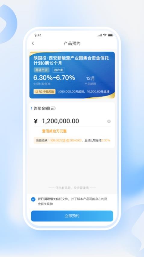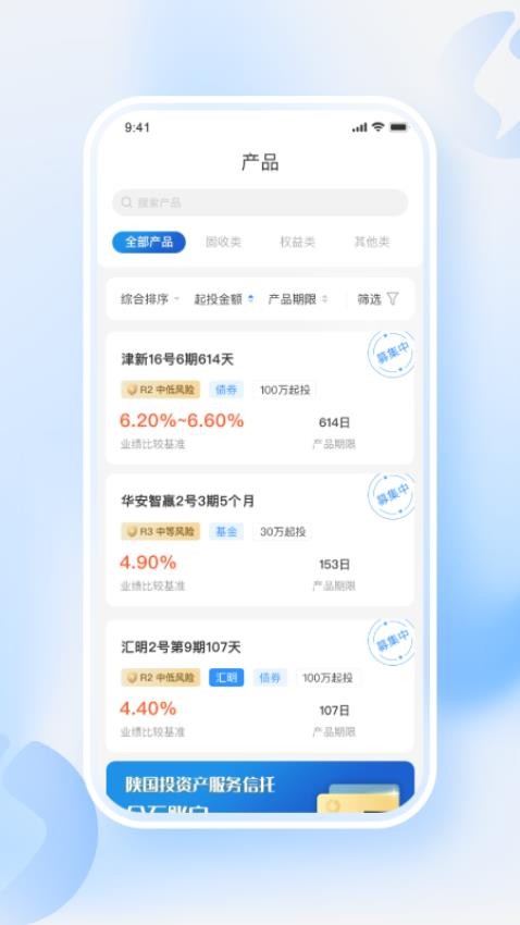 陕国投信托APP是一款专为高净值人士打造的智能化财富管理平台,致力于为用户提供安全、便捷、专业的信托投资服务。通过这款应用,投资者可以轻松获取陕国投信托旗下丰富的理财产品信息,深入了解各类产品的详细内容,并根据自身需求进行预约交易。平台采用先进的金融科技手段,确保用户能够实时掌握市场动态,做出明智的投资决策,从而获得稳健的投资收益。