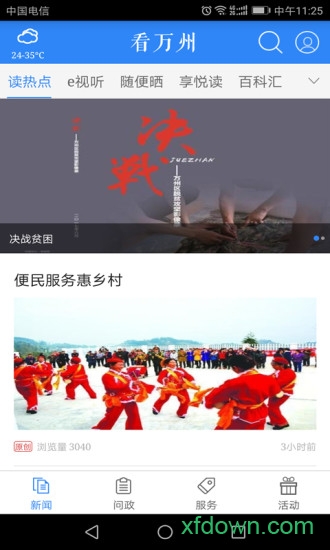 看万州app是一款专注于万州本地资讯服务的综合性新闻平台,以万州为核心,辐射周边区域,为用户提供全面、及时、便捷的信息服务。无论是政务动态、民生热点,还是公共服务、社区活动,看万州app都能让用户第一时间掌握万州的大小事,成为万州居民不可或缺的资讯助手。通过这款软件,用户可以轻松获取本地新闻,享受个性化订阅、高效浏览、社交分享等丰富功能,让生活更加便捷高效。