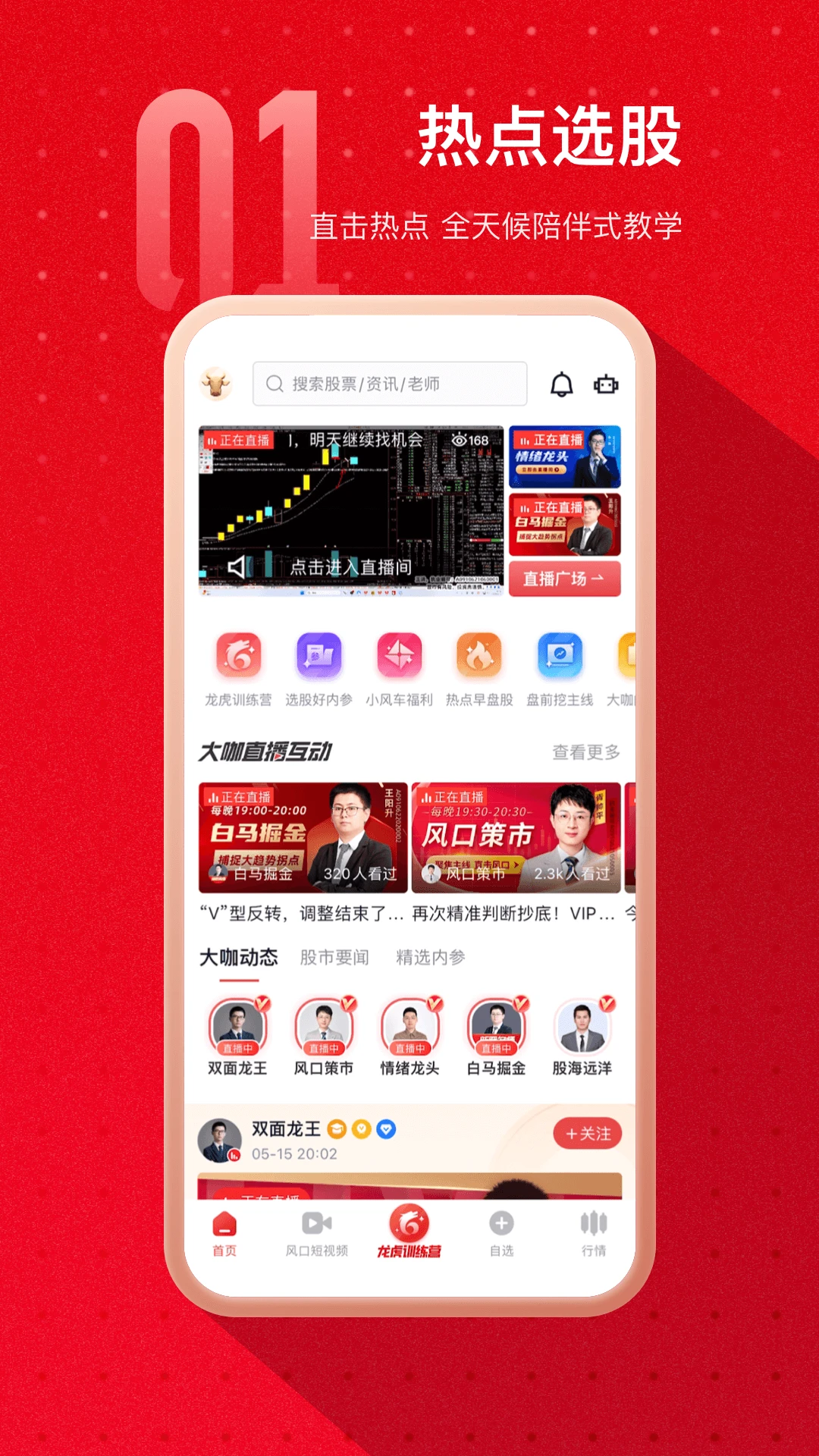 基础功能:行情、自选股、视讯、直播、诊股,龙虎榜等。提供全面的市场数据和工具,满足不同投资者的需求,让您的投资决策更加便捷高效。