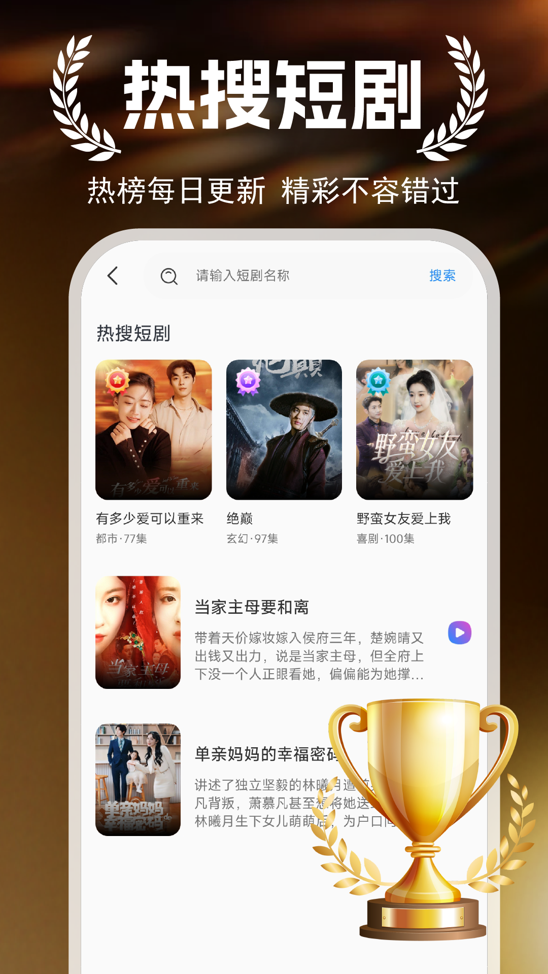 平台拥有数万部热门短剧,涵盖各种题材和类型,从青春校园到职场励志,从古装仙侠到现代都市,应有尽有。无论您喜欢哪种风格,都能在这里找到心仪的作品。每天新增大量内容,保证您永远看不完。资源丰富,更新迅速,让您的追剧生活永不枯燥。
