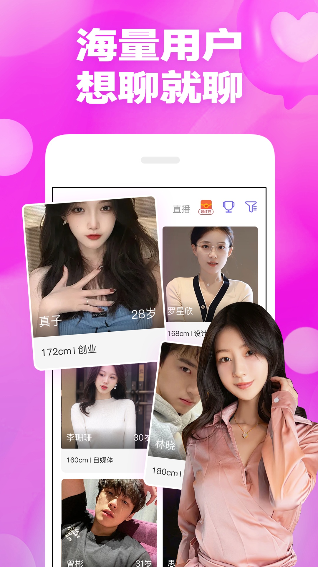 平台拥有庞大的用户群体,覆盖不同年龄、职业和兴趣爱好的朋友。你可以根据个人偏好筛选匹配对象,轻松找到志趣相投的聊天伙伴。无论是想结识新朋友,还是寻找特定话题的交流对象,海量用户库都能为你提供丰富的选择,让社交不再受限。