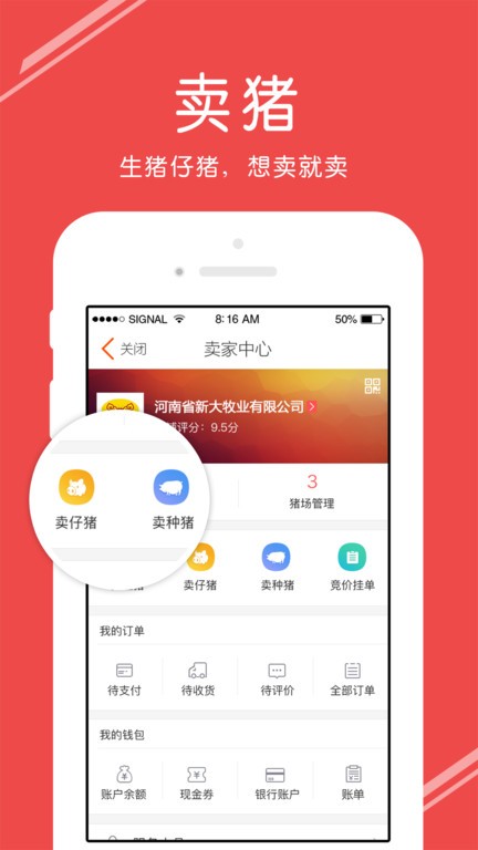 卖家可以在线卖生猪或是仔猪,在平台上就可以进行生猪交易。支持多种交易模式,包括一口价、议价和拍卖等。