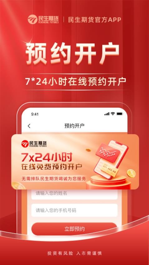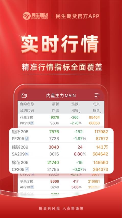 民生期货开户交易app官方版是一款专业、安全、高效的期货投资服务平台,致力于为用户提供全方位的期货交易解决方案。无论您是期货投资新手还是资深交易者,都能在这里找到适合自己的投资工具和服务。通过民生期货开户交易app,用户可以轻松完成在线开户、实时交易、行情分析等操作,享受一站式的期货投资体验。
