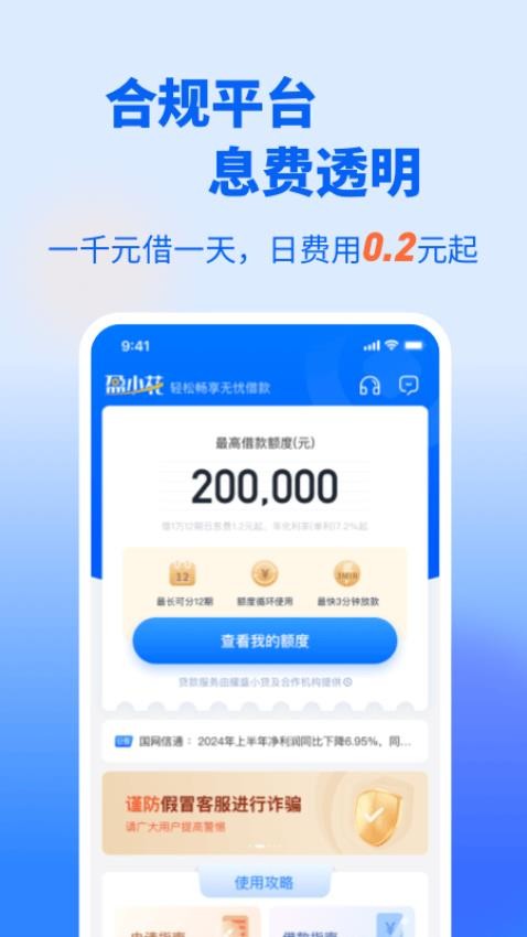 盈小花借款app是一款专业可靠的线上借贷平台,由持牌金融机构运营,为用户提供安全便捷的借款服务。通过智能风控系统,平台能够快速审核用户资质,实现秒级放款,帮助用户及时解决资金周转问题。该应用采用银行级加密技术,严格保护用户隐私信息,让借款过程更安心。无论是日常消费、医疗应急还是其他资金需求,用户都能在额度范围内灵活借款,享受透明合理的利息费率。操作界面简洁明了,从申请到还款全程线上完成,省去了传统借贷的繁琐流程。