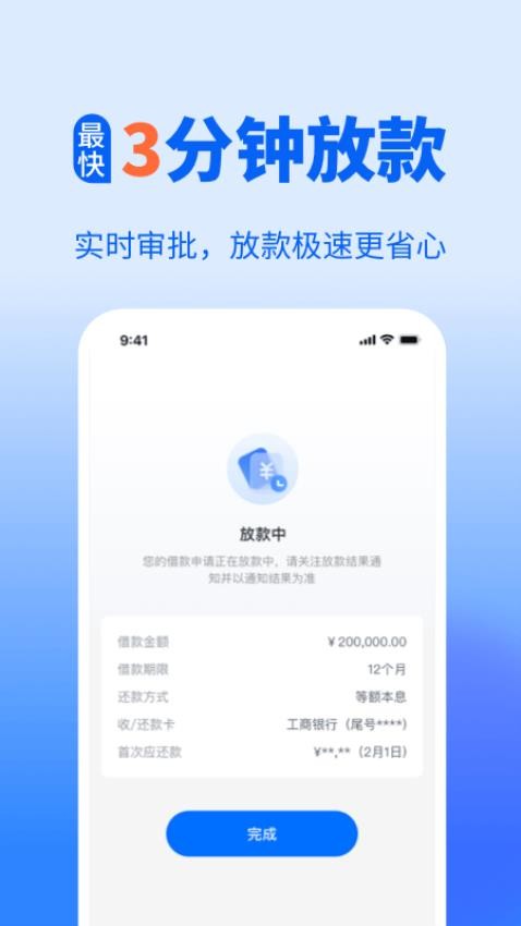 借款申请提交后,用户可实时查看审批进度,系统会智能预估放款时间,让您对资金到账时间心中有数。