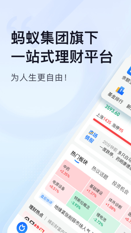 蚂蚁财富app,一般又称蚂蚁聚宝app。蚂蚁金服旗下投资理财平台蚂蚁财富APP是蚂蚁集团旗下理财平台。包含各类理财产品、理财服务、社区互动等特色功能,平台覆盖超9300支基金,申购费用1折起,致力为投资者提供更安全更全面的一站式理财平台。