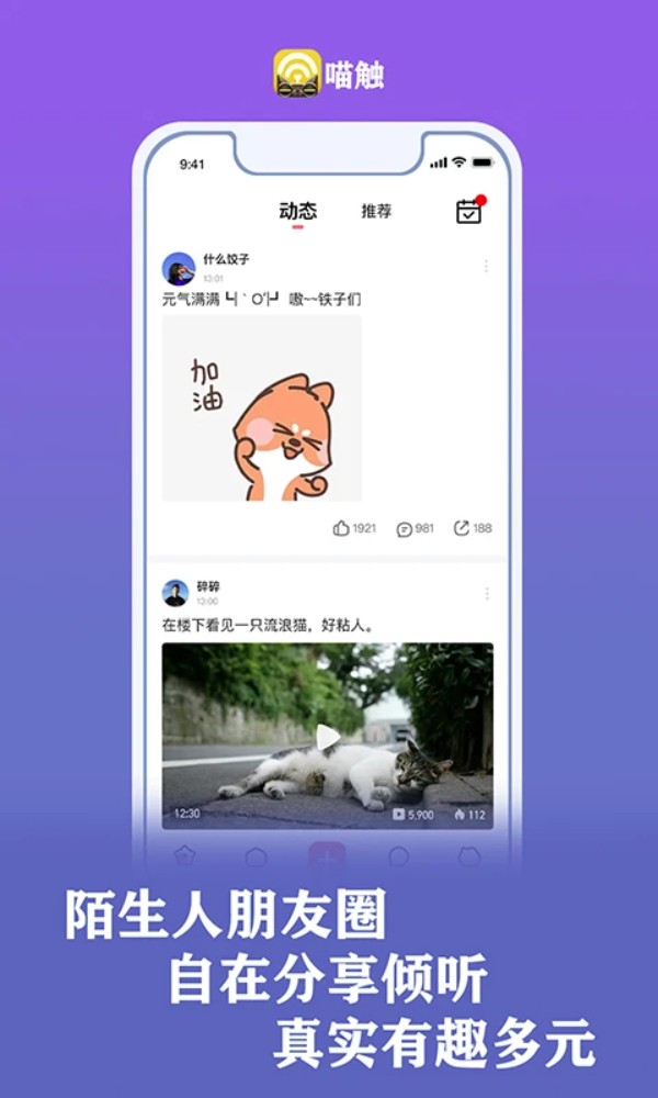 喵触是一款以温暖社交为核心的创新平台,致力于打造真实、积极的互动空间。在这里,每个生活瞬间都能被温柔记录,每份善意都能获得回应。平台独创的"能量值"体系不仅量化了用户的每一次分享与参与,更构建起独特的正向激励循环。从兴趣部落到公益活动,从情绪日记到成长故事,喵触用精心设计的互动机制,让志同道合的人们在价值观共鸣中相遇。这不仅仅是一个社交应用,更是一个能让用户感受到归属感的情感栖息地。