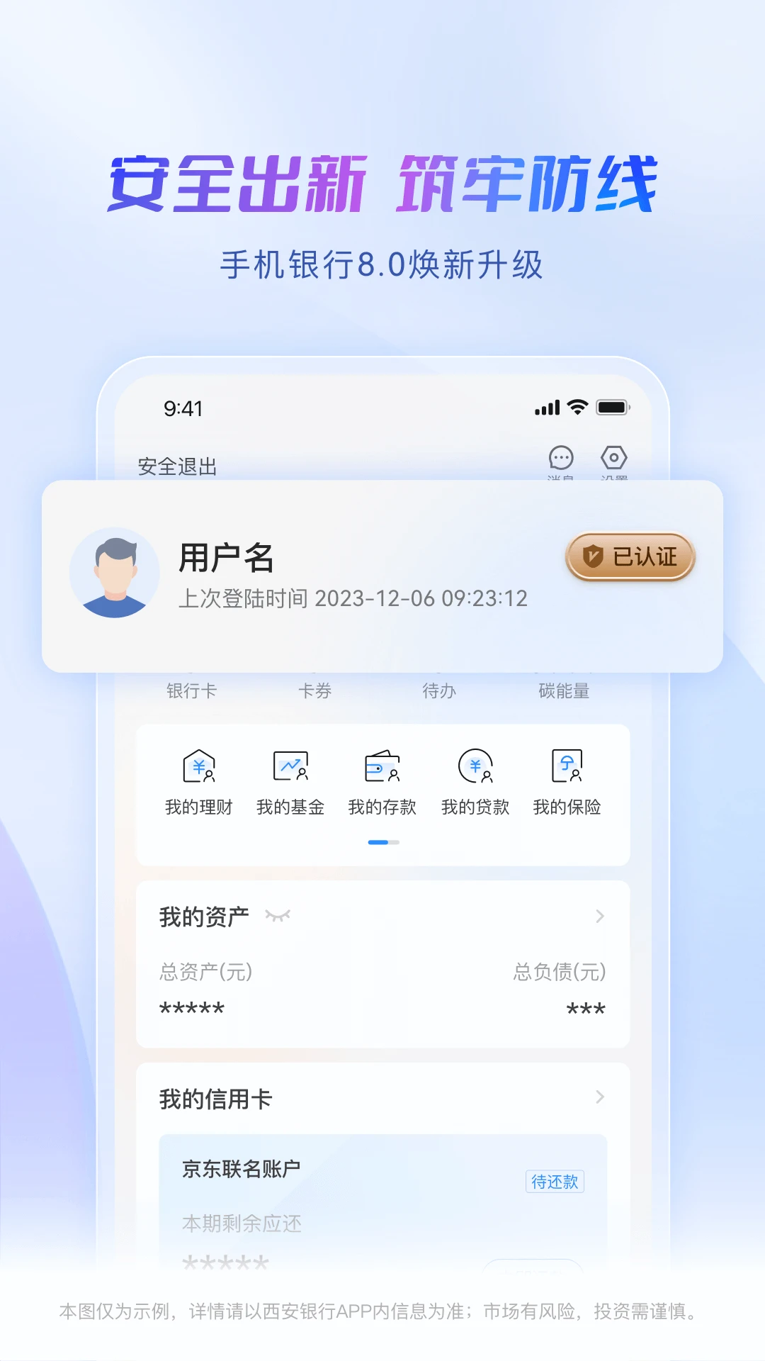 详情描述:西安银行手机银行是我行专门为智能手机客户量身打造的移动金融服务平台。客户不但可随时随地享受安全丰富的金融服务,更可畅享精彩时尚的移动生活。专业丰富的金融服务:西安银行手机银行涵盖了日常营业网点提供的基本金融服务,包括账户管理、智能转账、储蓄理财、投资理财、生活缴费等功能,让您轻松掌握账户资金动态,随时随地进行财富管理。此外,还提供信用卡还款、贷款申请、外汇兑换等增值服务,满足客户多样化的金融需求。多重可靠的安全保障:西安银行手机银行采用多种安全保护措施来确保您的账户资金安全。包括数据传输加密、超时自动退出、动态密码校验、限额控制等。同时,系统还配备了实时风险监控和异常交易预警功能,全方位保障您的资金安全。丰富多彩的营销活动:随着西安银行手机银行的推广,西安银行也将适时推出各类丰富多彩、奖励丰厚的活动,如新用户注册礼、交易抽奖、积分兑换等,让您在享受便捷金融服务的同时还能获得额外惊喜。敬请关注移动银行公告或西安银行官方网站,及时获取最新活动信息。