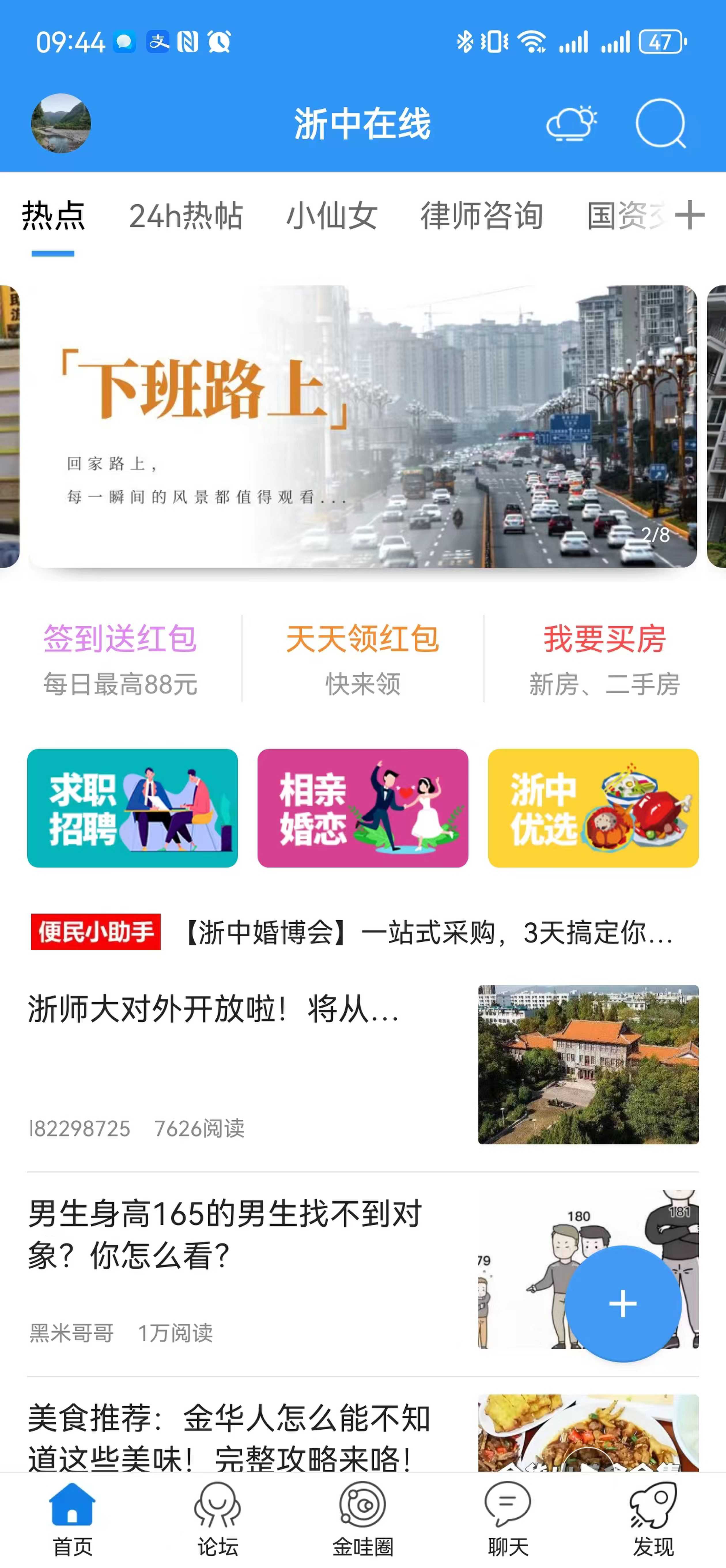 浙中在线官方App是金华地区最具影响力的本地生活服务平台,集资讯查询、社交互动、生活服务于一体,为金华市民打造全方位的数字化生活体验。作为金华本地用户的首选应用,它不仅提供最新鲜的本地资讯,还能查询违章记录、天气预报、高铁时刻表,更有丰富的兼职招聘信息和同城交友功能。其中最受欢迎的"金哇圈"栏目,堪称金华人的线上朋友圈,已有超过100万本地用户在这里分享生活点滴,是认识新朋友、拓展社交圈的绝佳平台。