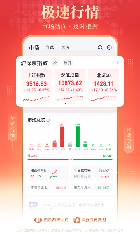 国泰海通通财是一款专业的综合金融服务平台,致力于为投资者提供高效、便捷的财富管理体验。平台支持7*24小时全天候开户服务,让您随时随地开启投资之旅。无论是炒股、理财还是基金投资,国泰海通通财都能为您提供一站式服务,帮助您更快速地做出投资决策,把握市场机遇。