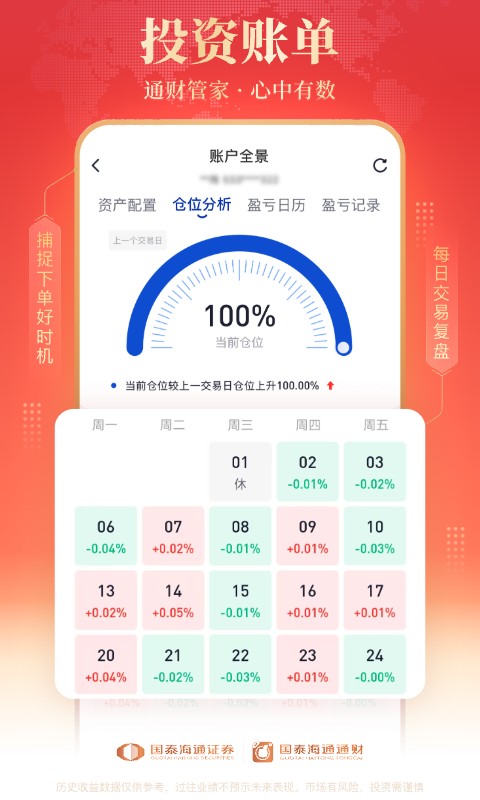 盈亏情况一目了然,每日交易复盘功能让您清晰掌握投资表现。平台还提供6大维度投资能力分析,并匹配相应的工具和课程,帮助您不断提升投资水平,实现财富增值。