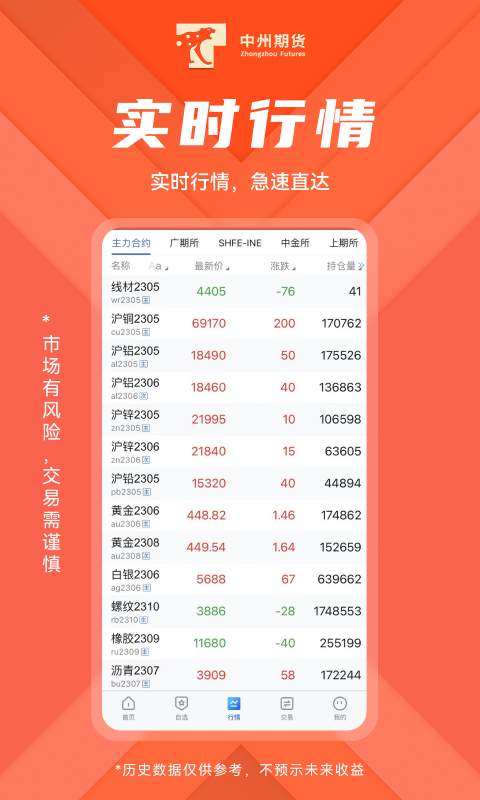 中州期货App是一款功能强大、操作便捷的移动端金融交易平台,专为期货投资者量身打造。无论您是专业交易员还是初入市场的投资者,都能通过这款App获得全方位的金融服务支持。我们为您提供极速直达的实时行情数据,确保您能够第一时间掌握市场动态,做出精准的交易决策。