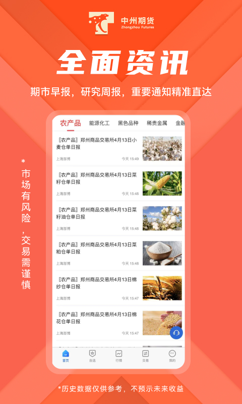 除了基础的交易功能外,中州期货App还为您提供海量的实时资讯和专业研究报告。我们的研究团队每日更新市场分析、行业动态和投资策略,助您把握市场脉搏。无论您身处何地,都能通过手机随时查阅最新资讯,不错过任何投资机会。