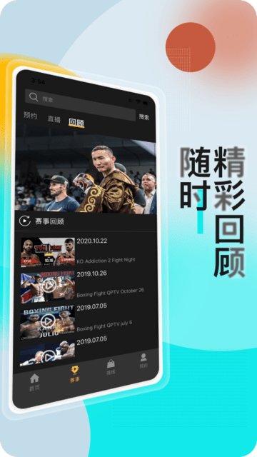 平台提供海量高清赛事视频,包括实时直播和精彩回放。独家视角拍摄的比赛画面,让你仿佛置身现场,感受拳击运动的激情与魅力。错过直播也不用担心,随时可以观看完整回放。