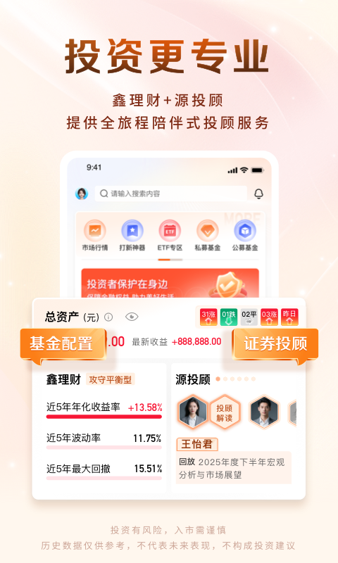华源财富APP是华源证券旗下的一站式投资理财平台,依托全牌照国资券商的专业背景,为投资者提供安全、高效、多元化的金融服务。平台涵盖股票交易、基金理财、投资顾问、财经资讯等核心功能,致力于满足不同投资者的个性化需求。通过智能化的资产配置方案和动态跟踪服务,结合专属财富顾问团队的专业支持,华源财富APP为用户的财富成长提供全程陪伴。无论是新手投资者还是资深玩家,都能在这里找到适合自己的理财工具和服务,实现财富的稳健增值。