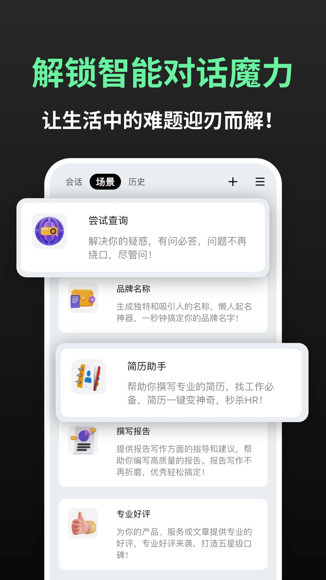 AI问问是一款功能强大的中文版GPT类智能聊天助手软件,它能够像一位贴心的朋友一样陪伴在你身边,为你提供全方位的智能服务。这款软件不仅能进行日常对话交流,还能解答各类问题、提供实用信息,让你的生活变得更加轻松便捷。与传统搜索引擎相比,AI问问具有响应速度快、答案精准、智能化程度高、开放性强等显著优势,而且完全没有任何广告干扰,为用户带来纯净的使用体验。
