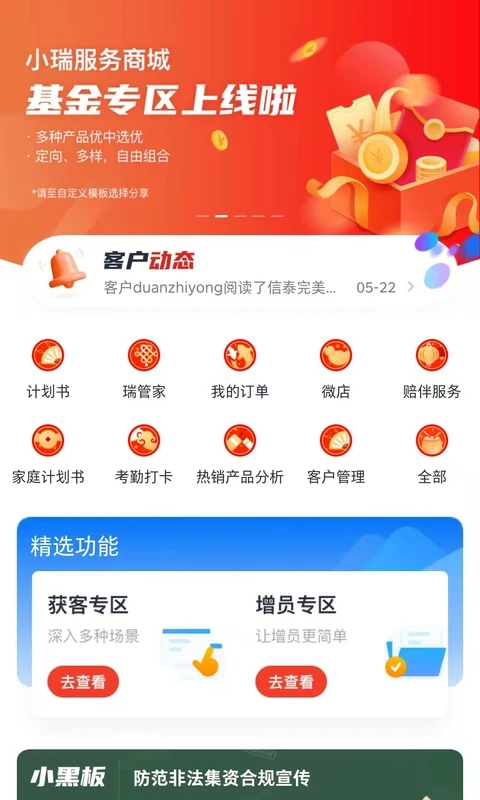 保单管家功能是"华瑞e家"的一大亮点,它能够智能管理客户的所有保单信息,包括保单状态提醒、续期缴费通知等,帮助代理人更好地维护客户关系。客户管理模块则提供了完善的客户信息管理系统,支持客户分类、跟进记录、生日提醒等功能,让代理人的客户维护工作更加系统化和高效化。