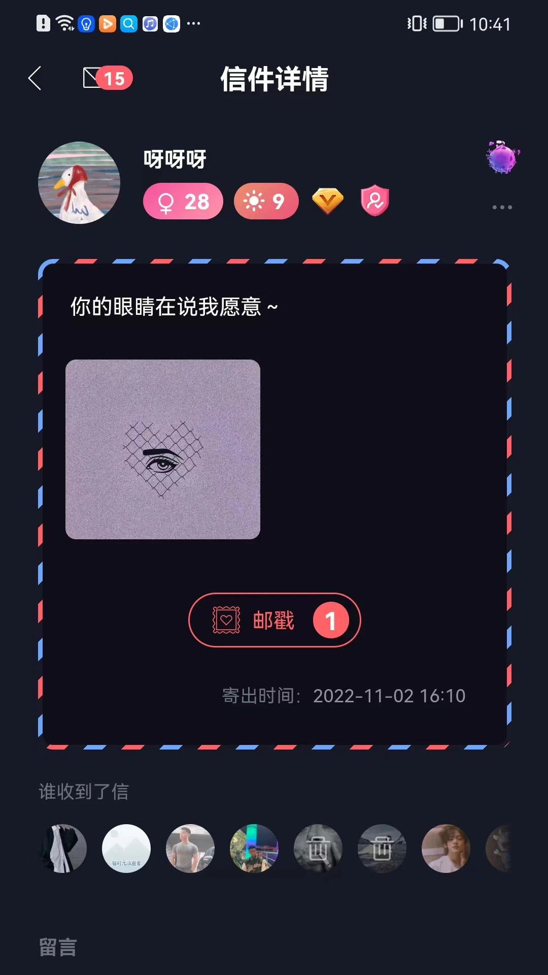 这个充满仪式感的时空胶囊功能,让你可以将当下的心情封存起来。每封信件都会在系统中沉睡至少一个月才会被随机用户挖掘到,这种跨越时间的交流方式让每封信都充满惊喜。你可以在这里写下对未来的期许,或是记录当下的感悟,让时间成为最好的见证者。