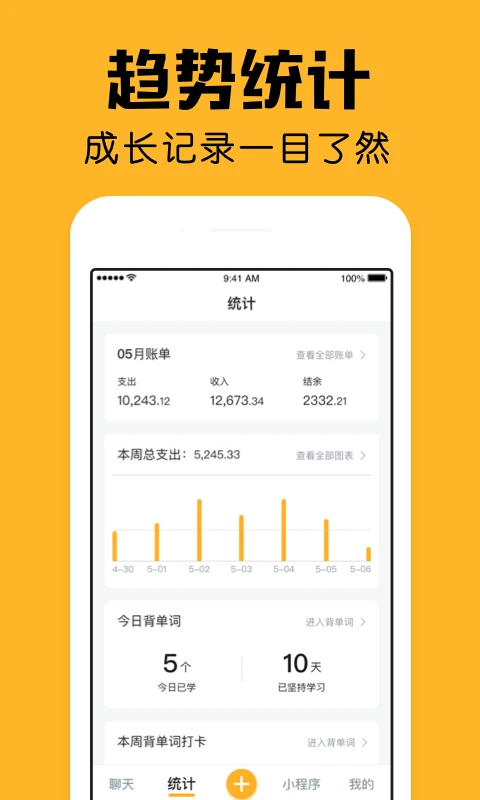 趣味记账模式:将枯燥的记账变成互动游戏,通过趣味嗨聊让每一笔消费记录都充满期待,从此告别记账半途而废的困扰