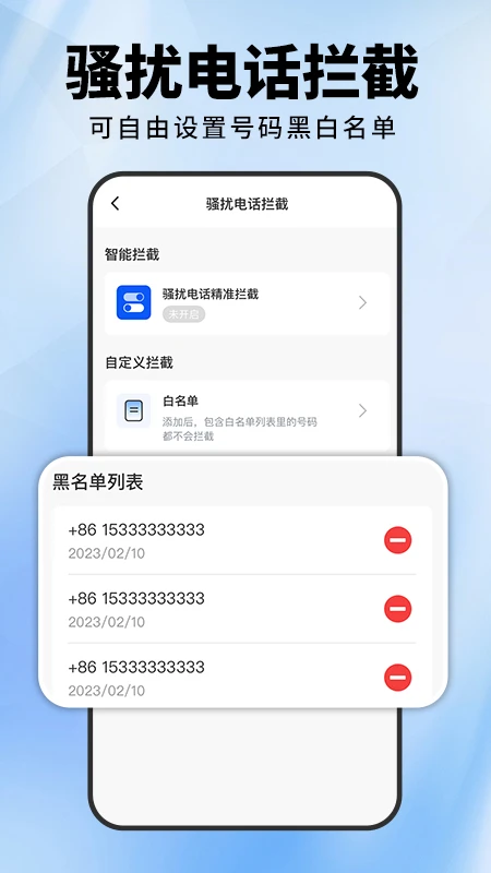 【陌生来电识别】骚扰电话拦截助手具备先进的陌生来电识别技术,能够自动检测并标记未知来电。无论是广告推销、诈骗电话,还是其他可疑号码,应用都能快速识别并提醒用户,让用户在接听前就能了解来电者的身份信息。这项功能大大降低了用户被骚扰或诈骗的风险,提升了通讯安全性。
