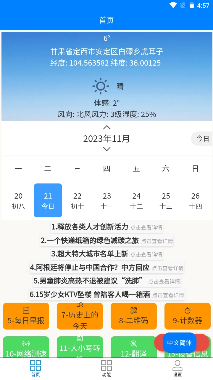 这款多功能工具集为用户提供了一系列实用便捷的小工具,涵盖日常生活的方方面面。从基础的天气查询、日历查看,到专业的端口扫描、进制转换,再到趣味性的亲戚计算器、历史上的今天,应有尽有。无论是工作学习中的计算需求,还是生活中的信息查询,都能在这里找到合适的解决方案。界面简洁明了,操作简单直观,让您随时随地享受科技带来的便利。