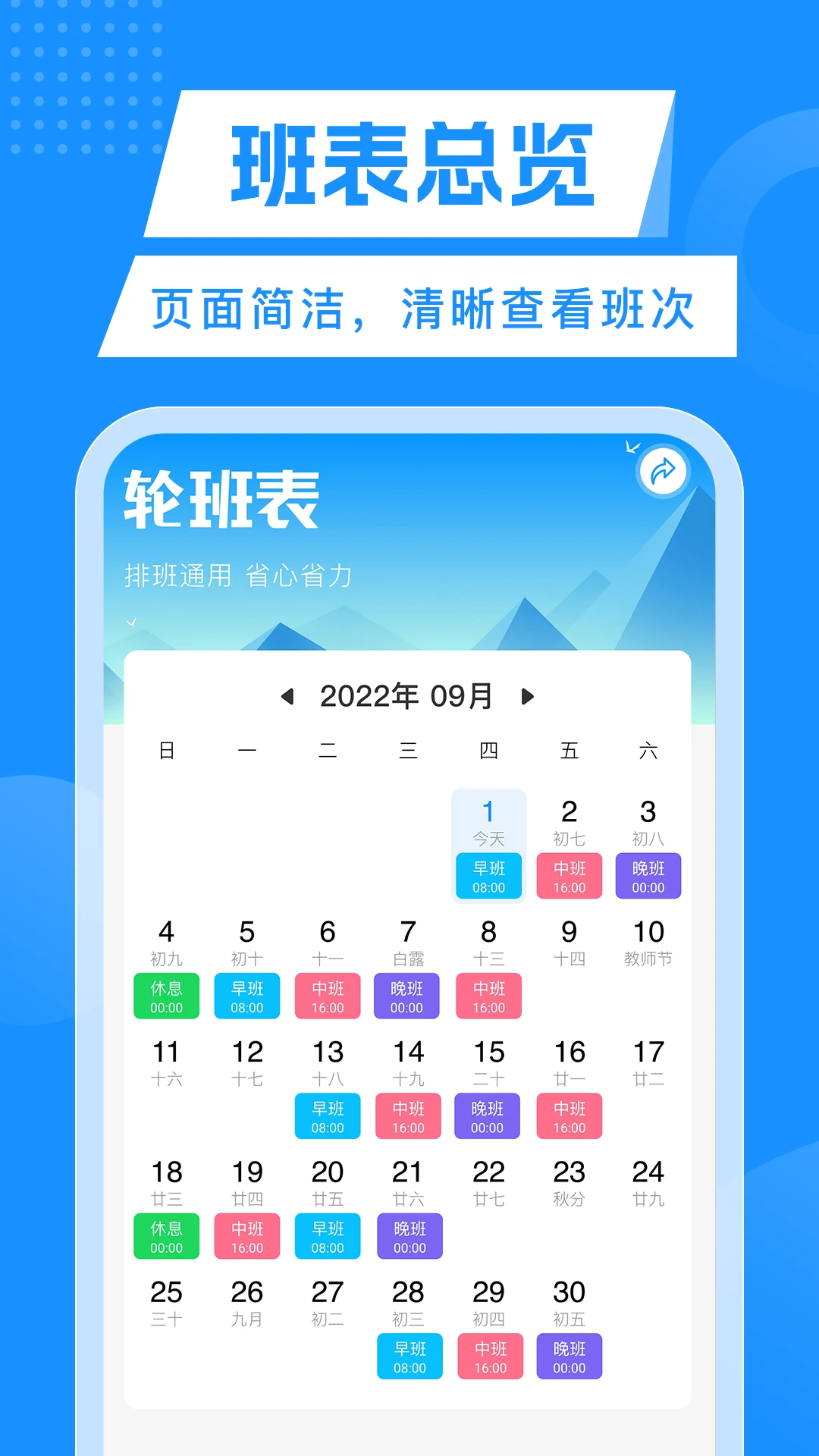 轮班表是一款专为倒班工作者设计的智能排班助手APP,致力于解决各类工作岗位的排班难题。无论是医院里的医生护士、电力系统的维护人员,还是安保客运等需要24小时轮岗的行业,这款软件都能提供全方位的排班支持。通过人性化的功能设计,轮班表让复杂的排班工作变得简单高效,帮助管理者轻松应对人员调度,同时也为倒班员工提供贴心的值班提醒服务。