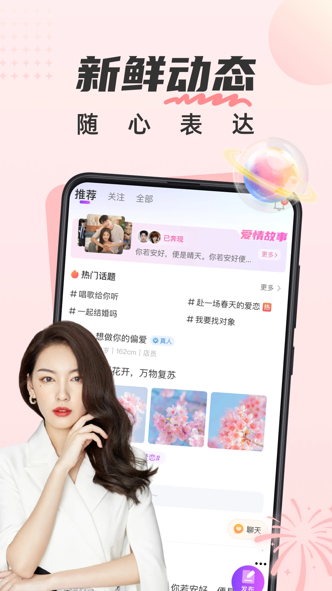 随心畅聊:支持文字、语音、视频多种沟通方式,甜蜜情话一键送达,让同频的灵魂在互动中擦出火花。