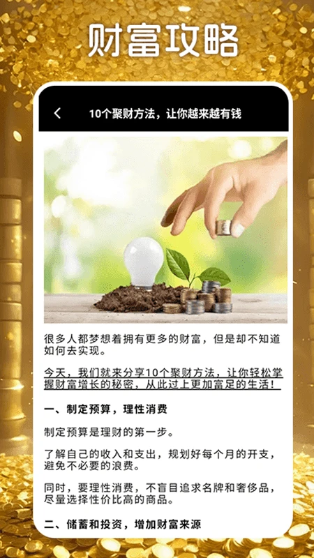 APP内置丰富的财富知识体系,包含从基础理财到高级投资的全方位教程,每套秘籍都由专业金融团队精心打造。用户可以根据自身需求选择不同难度的课程,系统化的学习路径让理财知识掌握更高效。特别设置的实战案例解析,帮助用户将理论转化为实际应用能力,真正掌握财富增长的底层逻辑。