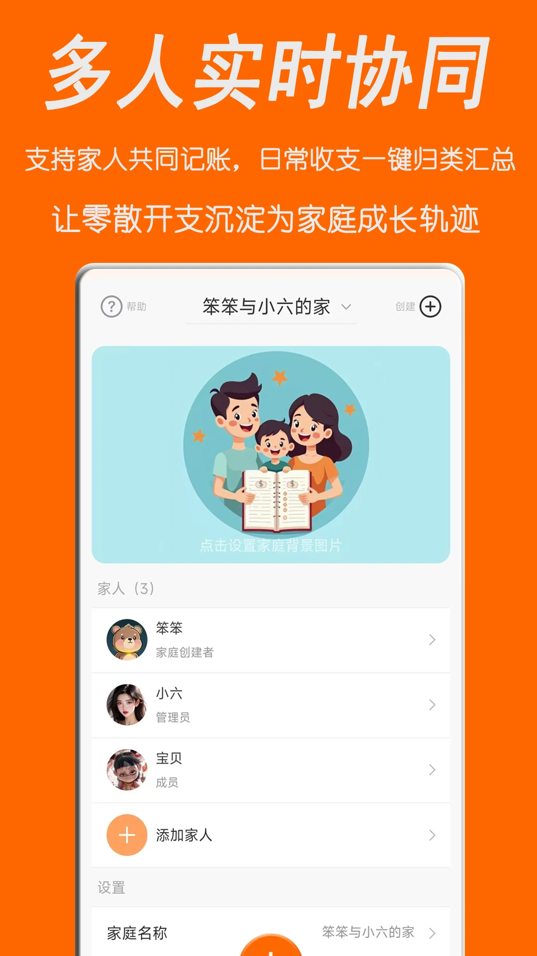 家账本——让温暖生活,有迹可循。它不仅是一款记账工具,更是维系家庭情感的纽带,记录着每个家庭的幸福时光。