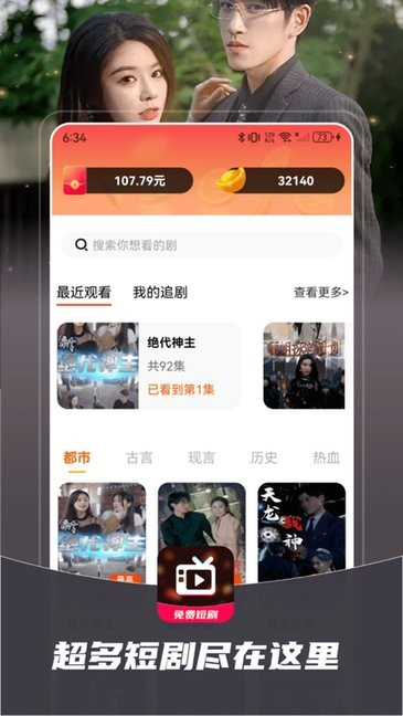 软件当中拥有网上大量的的短剧资源,拥有多种不同类型的题材,例如都市、古言、现言、历史、热血等可供用户选择。与多家知名影视制作公司达成战略合作,确保内容持续更新,独家资源占比超过30%,让用户总能抢先看到最新最热的短剧作品。