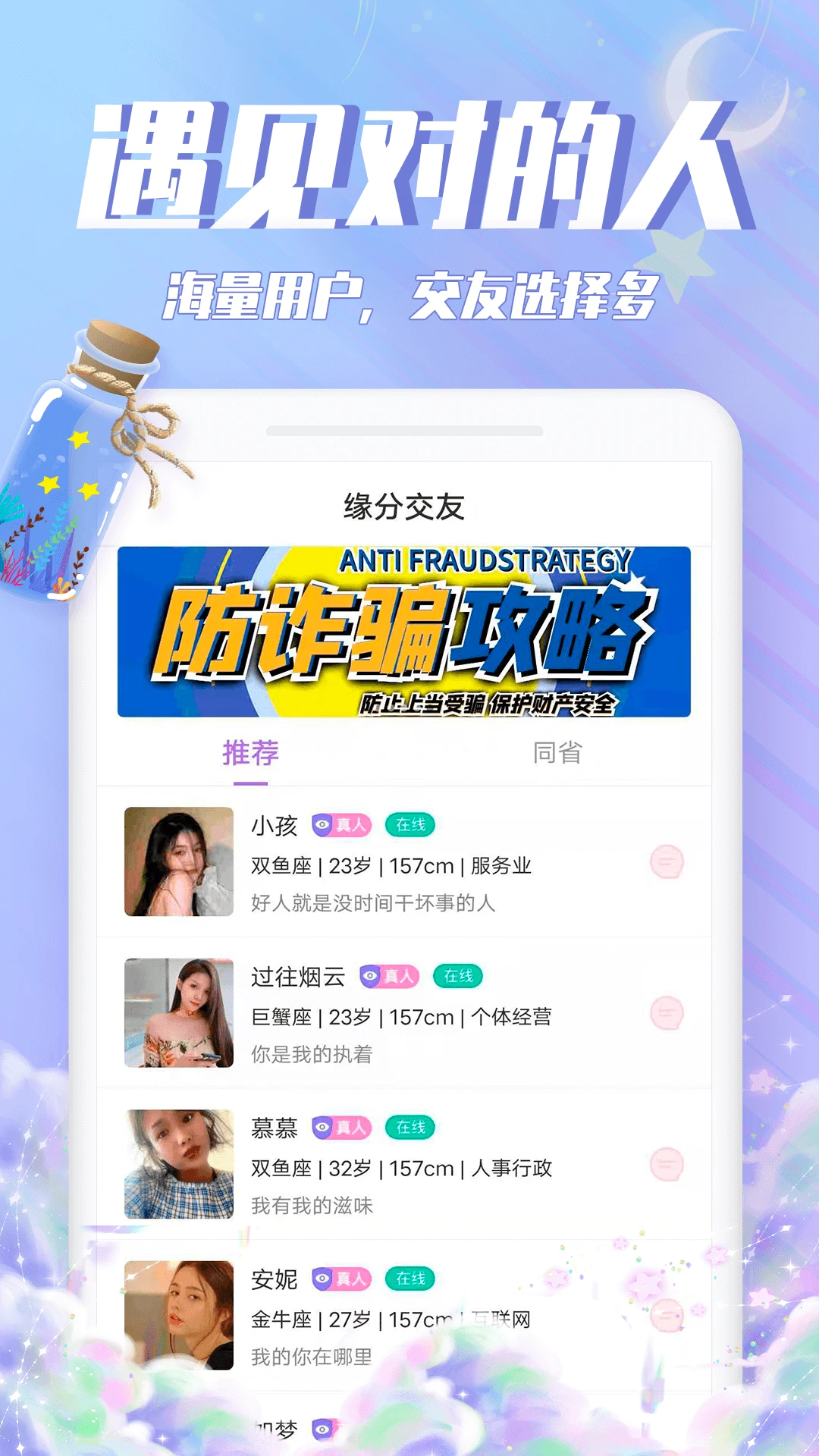 倾诉聊天就差一个有趣的漂流瓶啦~快来加入我们,让每一次交流都充满惊喜与期待。在这里,你不仅能找到倾听者,更能遇见那些与你心灵相通的伙伴。让我们一起打造一个充满温暖与欢乐的社交天地!