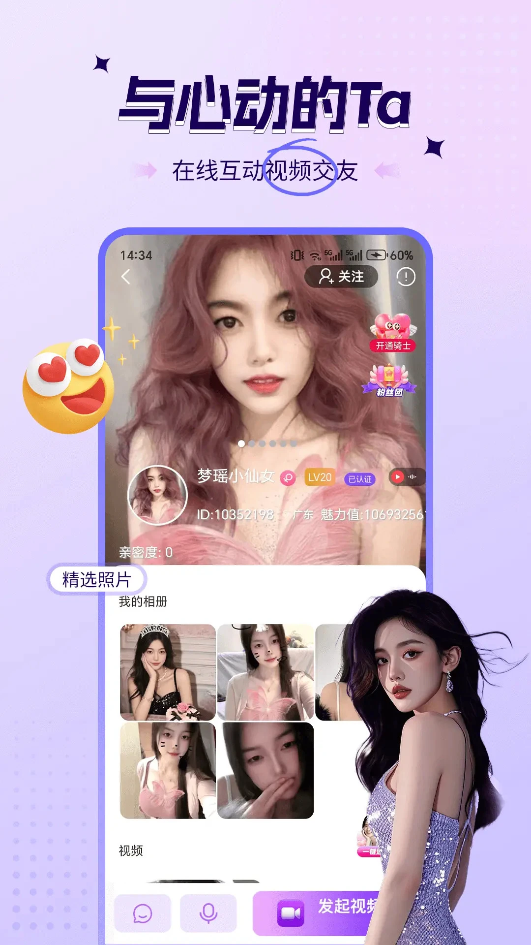 与女神美女主播视频聊天,秀场狂欢盛宴,在线美女秀场互动。在喜翻视频交友社区,你可以与上千位知名美女主播近距离互动,欣赏她们精彩的才艺表演。这里汇聚了数千万热爱社交的用户,为你带来多元化的表演风格和高清画质体验。炫丽的礼物特效和丰富的互动功能,让你仿佛置身于现场狂欢之中。无论是才艺展示、一对一聊天,还是多人连线、私信互动,喜翻都能满足你的社交需求。快来加入这个时尚的聊天社区,邂逅心动的TA吧!