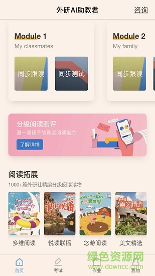 阅读资源库精选外研社多个知名系列读物,根据蓝思分级系统科学编排。系统会根据学生的阅读测试结果智能推荐合适难度的读物,并记录阅读进度和理解程度。每篇读物都配有朗读音频、重点词汇讲解和阅读理解练习,全方位提升阅读能力。