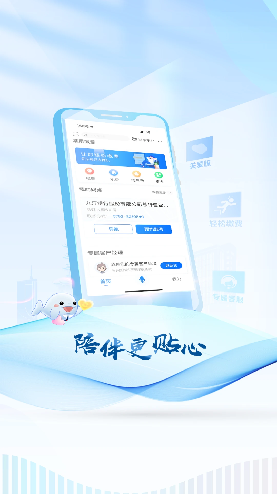 九江银行APP6.0以全新姿态闪耀登场,致力于为用户带来更温暖、更便捷的数字金融体验。此次升级聚焦"贴心关怀"理念,从服务、权益、陪伴、消费四大维度全面优化,让每一次操作都充满温度。无论是生活缴费、理财投资还是日常消费,6.0版本都通过智能化的功能设计和人性化的交互体验,让金融服务真正融入用户生活场景。创新的界面设计和流畅的操作体验,让不同年龄层的用户都能轻松上手,享受科技带来的金融便利。