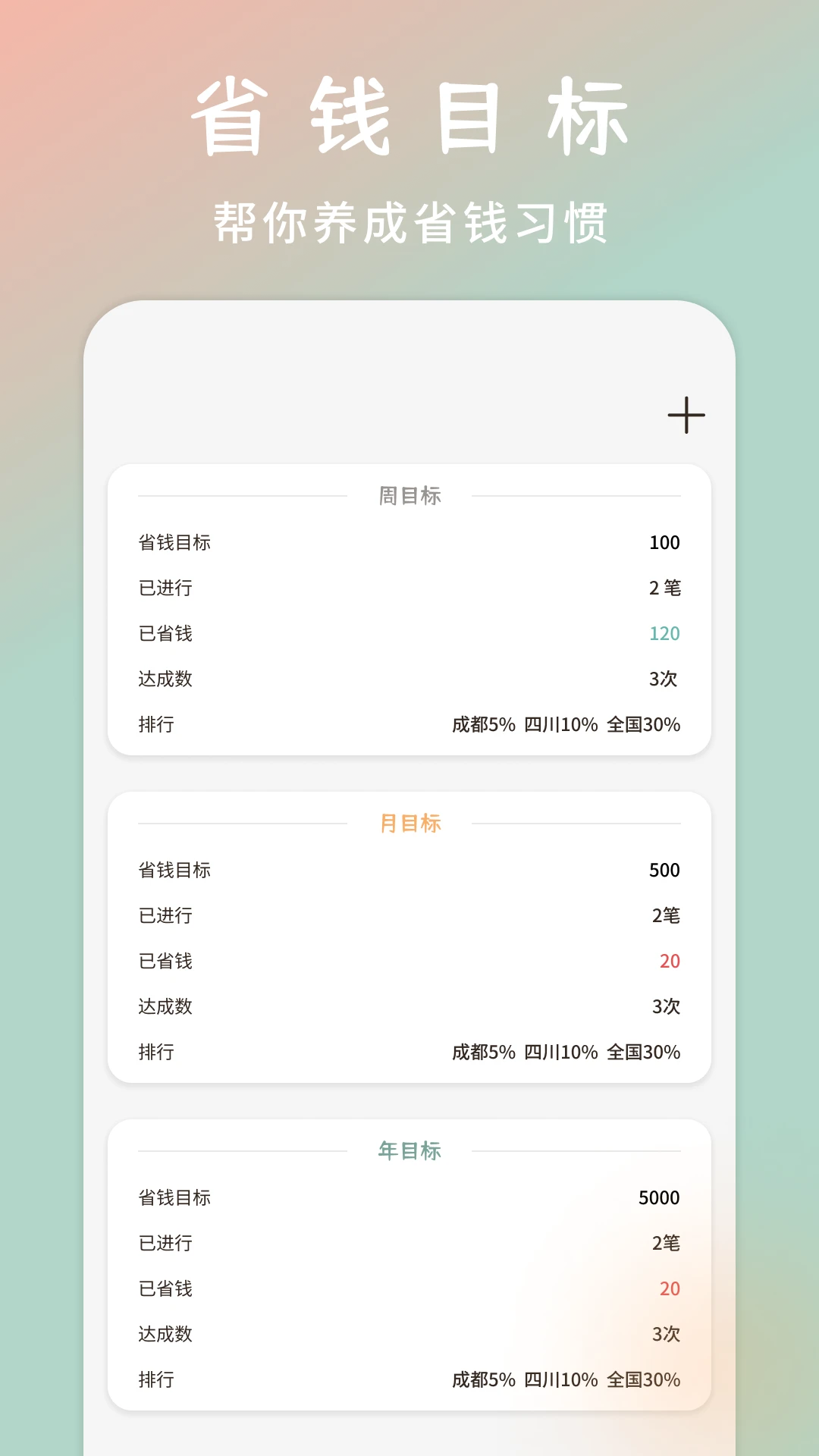 这里提供从年、月到周的多维度省钱目标设定功能,通过科学的预算规划帮助用户逐步实现储蓄计划。系统会自动记录每一笔收支明细,生成直观的图表分析,让你随时掌握资金流向。同时支持自定义分类标签,满足不同用户的个性化记账需求,让财务管理变得简单高效。