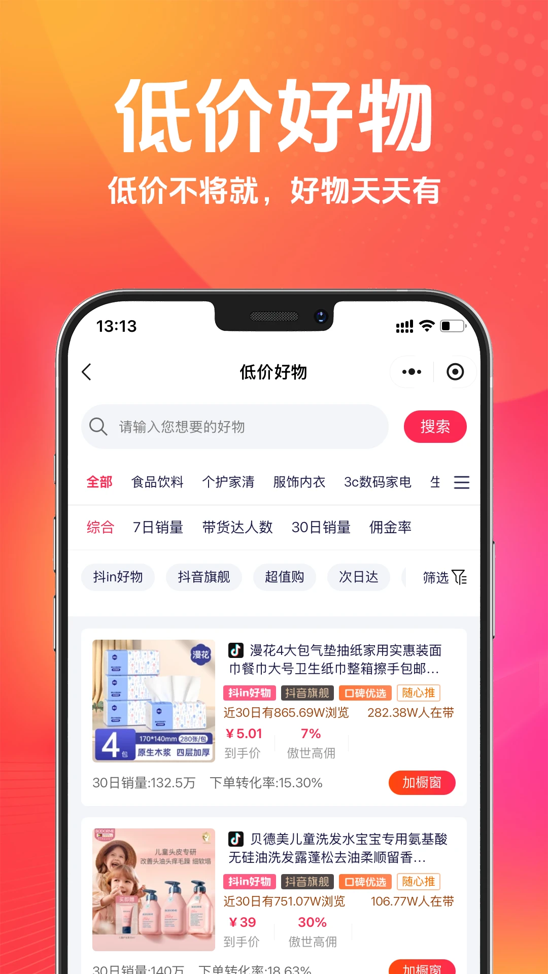 爆款商品精准发现功能是傲世严选的核心优势之一。通过实时跟踪抖音全品类商品数据,您可以轻松掌握市场最新动态,监控商品趋势变化。系统会智能分析各类商品的起量方法,帮助您快速复制爆款商品的运营策略,让您不再错过任何一个爆款机会。无论是季节性商品还是长期热销品,都能在这里找到最适合您的选品方案。