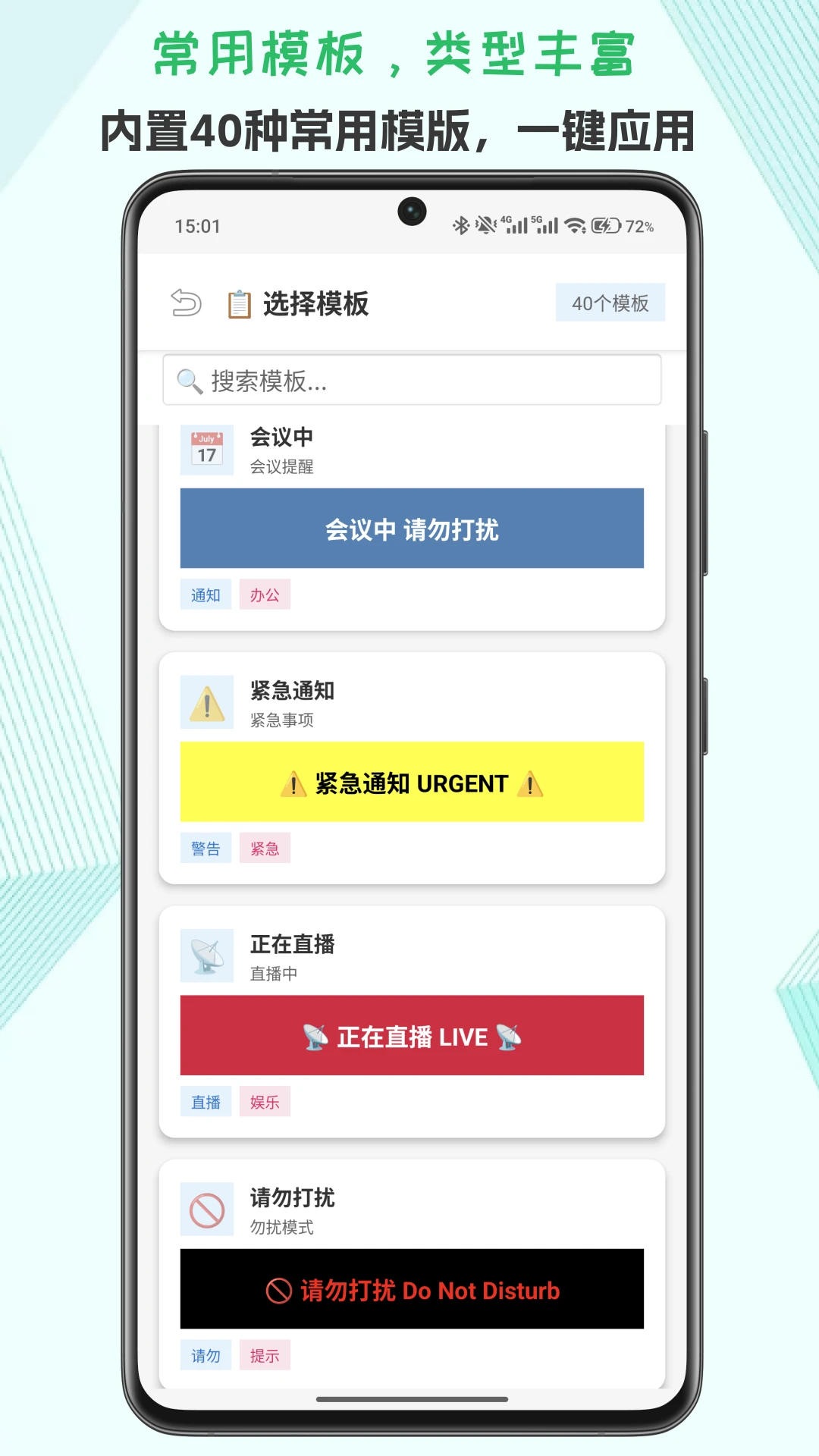 模板库每周更新,紧跟热点事件和节日主题,始终保持内容新鲜度。