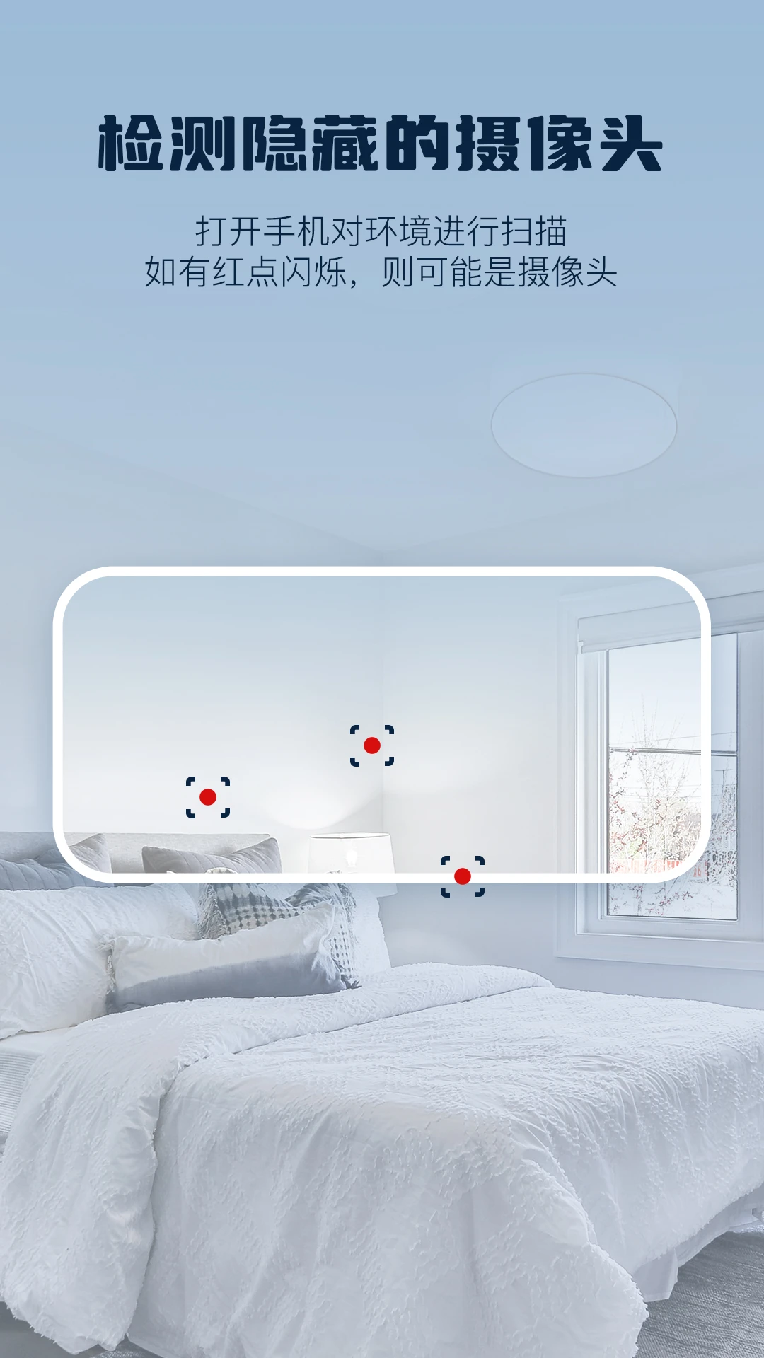 此外,鹰眼扫描还配备了专业的红点检测功能。通过该功能,用户可以在软件指导下,利用手机摄像头寻找隐藏摄像头的红外反光点,这种技术手段能够发现肉眼难以察觉的专业偷拍设备。软件操作界面简洁明了,检测过程快速高效,即使是技术小白也能轻松掌握使用方法。